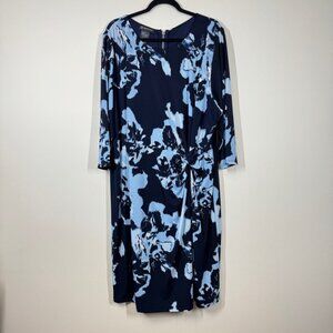 INC International Concepts Asymmetrical 3/4 Sleeves Blue Printed Dress Size 3x