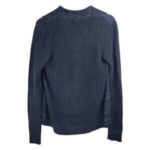 INC Navy Zip-Up Sweater Jacket Size S | Waffle Knit Sleeves | Faux Suede Trim