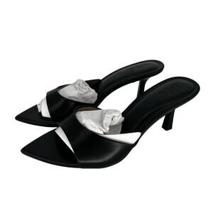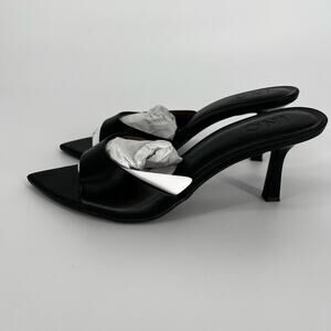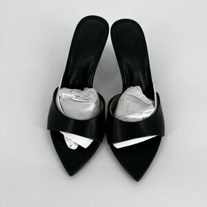 INC International Concepts Basaariap Mules in sleek black faux leather. Designed with a modern pointed toe, slip-on silhouette, and a chic mid-height heel, these heels bring a minimalist yet sophisticated look to any outfit. Ideal for office wear, date nights, or evenings out, they combine modern elegance with everyday versatility.