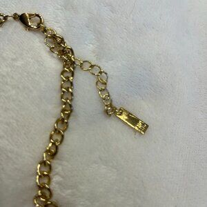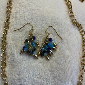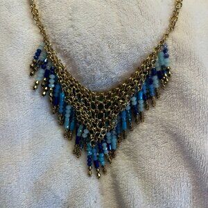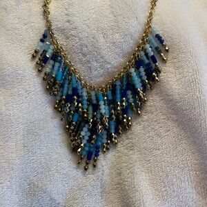 INC International Concepts Bib Necklace Earring Gold Tone Metal Blue Beads Set