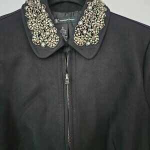 INC International Concepts Black Beaded Collar Flap Pocket Peplum Jacket S NWT