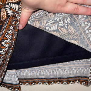 INC International Concepts black bohemian printed shift dress. In excellent condition! Crew neckline. Short, fitted sleeves. Straight bottom hemline. Knee-length & fully lined. Black with orange & white boho-inspired print. Size 6.
