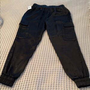 Stylish black cargo joggers. Elastic waistband with drawstring. Multiple pockets for convenience. Perfect for casual wear.