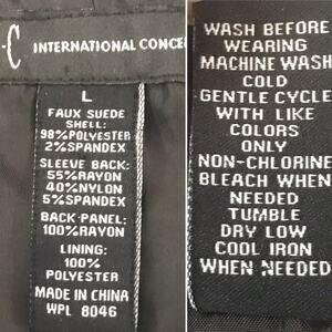 INC International Concepts L Black Draped Open Front Faux Suede Jacket, MSRP $99 in like new condition. Please study photos carefully to confirm condition, fabric content & approximate measurements.