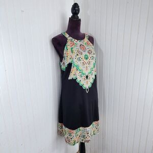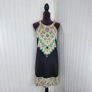 INC International Concepts Black Dress Inca Maya Geometric Pattern Stretch L