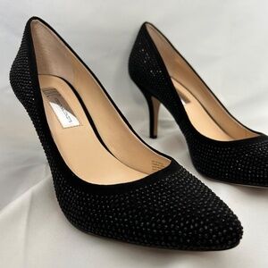 INC International Concepts Black Embellished Pointed Toe Pumps, Size 6M