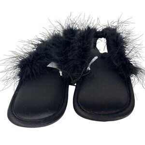 INC International Concepts Black Feather Faux Fur Slippers Womens Size 5-6