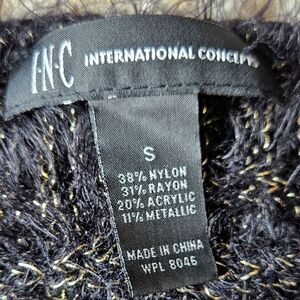 INC International Concepts Black & Gold Eyelash Knit Short Sleeve Knit Sweater