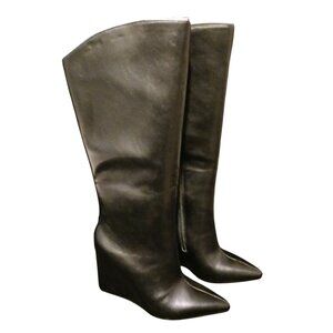 Sleek black heeled boots. Tall design with a pointed toe. Perfect for stylish outings.