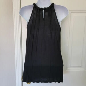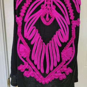 INC International Concepts Black Knit Halter Fuschia 3D Embroidered Ribcage M