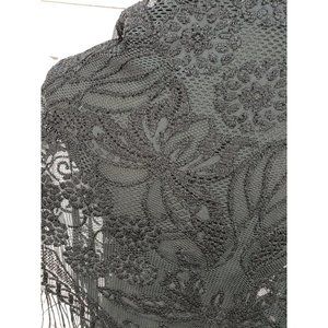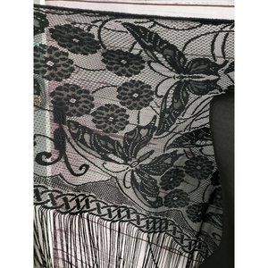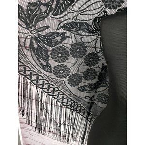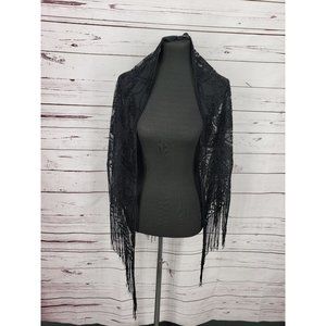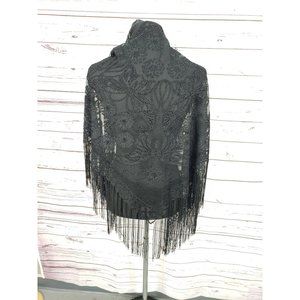 INC International Concepts Black Lace Fringe Floral Evening Shawl Wrap