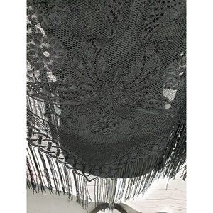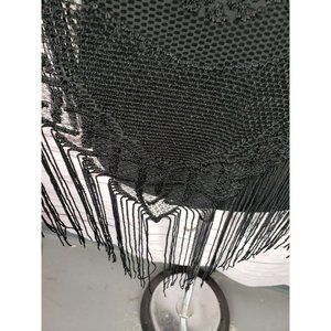 Beautiful detailed shawl with fringe. Lightweight and perfect for a summer Winter evening event. Black with some silver sparkle throughout it to give it that shine