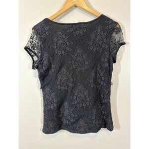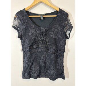 INC International Concepts Black Lace Top Size M Women's Blouse Whimsy Goth