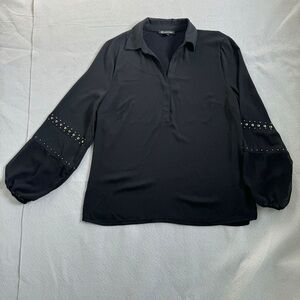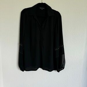 INC International Concepts Black Long Sleeve Blouse Top XL
