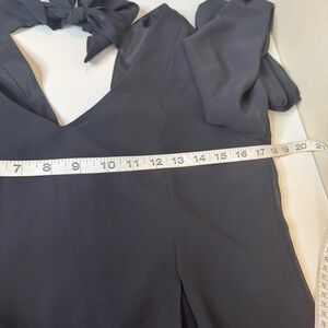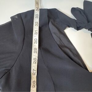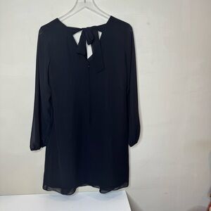 Chic black dress with long sleeves. Features a stylish back tie. Ideal for versatile wear.