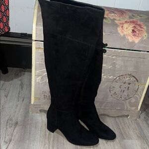 INC International Concepts Black Over the Knee Boots suede and leather black