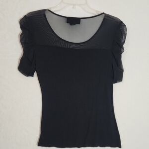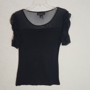 INC International Concepts Black Scoop Neck Cap Sleeve Blouse