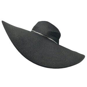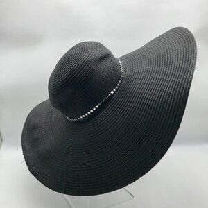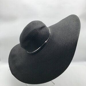 I.N.C. International Concepts Black Sun Hat With Decorative Shell Chain
