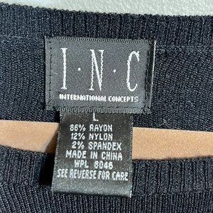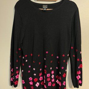INC International Concepts Black Sweater w/ Embroidered Pink Flowers