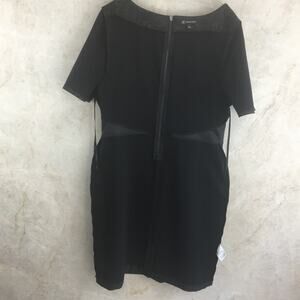 INC International Concepts Black Tone-on-Tone Leather Waist Zip-Up Dress Size XL