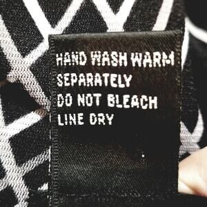 INC International Concepts Black White Abstract Top; Size M; Material - 100% Nylon; Care - Hand Wash Warm; Made in Taiwan; Long Raglan Sleeves, Boat Neck; Stretch;