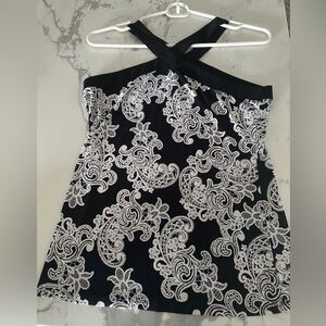 INC International Concepts Black & White Cross Front Top Size Small