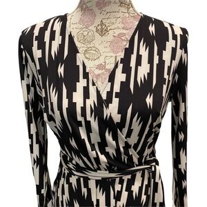 INC International Concepts Black & White Faux Wrap Dress with Belt Size Medium