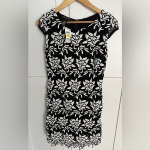 INC International Concepts Black & White Floral Dress Size Petite Medium PM NWT