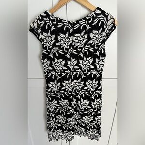 This elegant black and white floral dress is perfect for any occasion. The intricate design adds a touch of sophistication to your wardrobe.