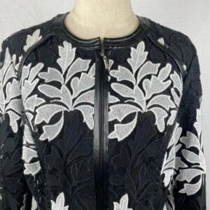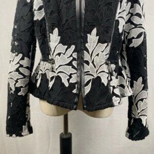 INC International Concepts | Black & White Lace Peplum Jacket | Women’s Medium