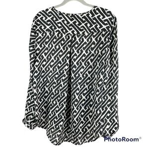 INC International Concepts Black and Cream patterned blouse. Roll tab sleeves.