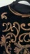 Elegant black midi dress with gold ornate patterns. Long sleeves. Perfect for evening wear.