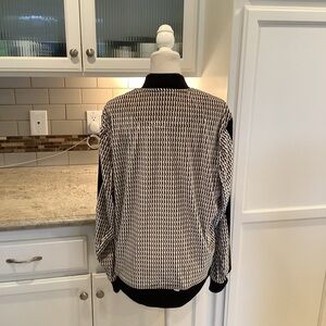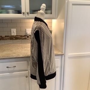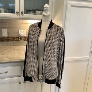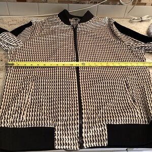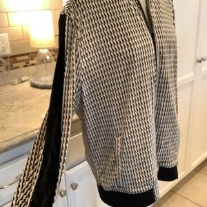 Stylish black and white houndstooth jacket with a sleek design. Perfect for any occasion.