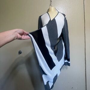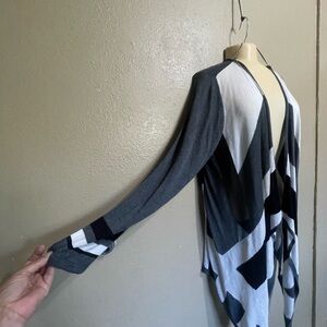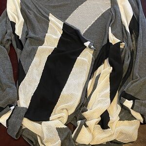 Chic open-front cardigan with bold black and white pattern. Lightweight and stylish for any occasion.