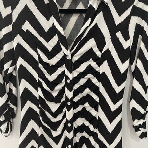 INC International Concepts Black/White Blouse Long Sleeve Size Xs