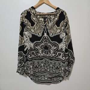 INC International Concepts - Blouse Patterned - Black White Yellow - Size 12