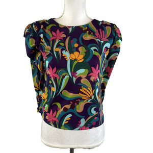 INC International Concepts Blouse Top size Small Pink Purple Floral Retro Hippie