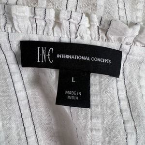 INC International Concepts Blouse Women's Peasant Top Cast Bohemian, White Sz L