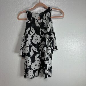 INC International Concepts Blouse Womens Extra Large Black White Floral Cold Shoulder New With Tags