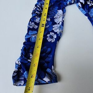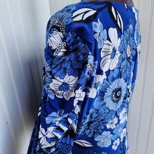 INC International Concepts Blue Black Stretch Floral Ruched Long Sleeve Dress L