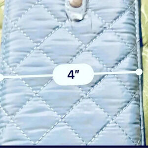 This bag is baby blue with a detachable ID case and straps. The main material looks like a quilted polyester. This is new with tags. Offers appreciated and a 10% discount is available for bundles. Thanks