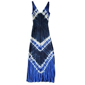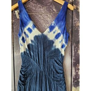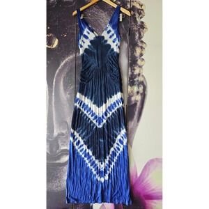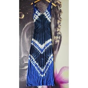 INC International Concepts Blue Tie Dye V Neck Maxi Dress Women's Size S Stretch