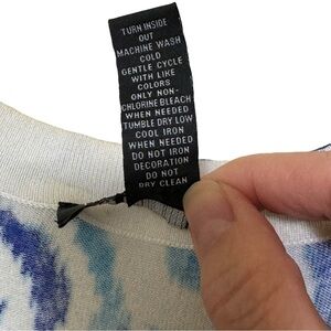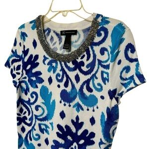 INC International Concepts Blue White Short Sleeve Top Rhinestone Collar Size S