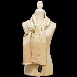 INC International Concepts Tartan Plaid Scarf. Approx. 18 inches by 72 inches. Blush, Cream and Beige. 100% Acrylic. New with Tags.