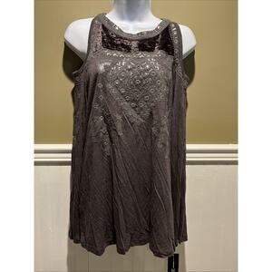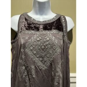 INC International Concepts Boho Embroidered Cold Shoulder Blouse Sz M grey NWT