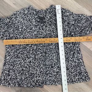 INC International Concepts Boucle Knit Crop Cardigan Sweater Black White