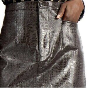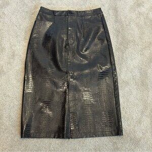 INC International Concepts Brown Reptile Embossed faux leather Pencil Skirt 6