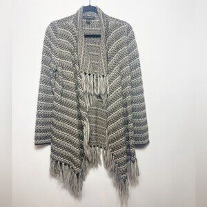 INC International Concepts Brown Tweed Fringe Open Cardigan Size Large