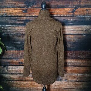 INC International Concepts Cardigan Sweater S Brown Metallic Sparkle Open Front