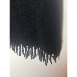 Black turtleneck pullover poncho with fringe. No arm holes.